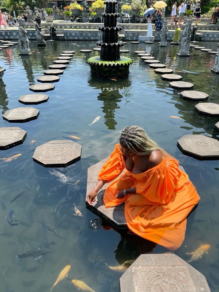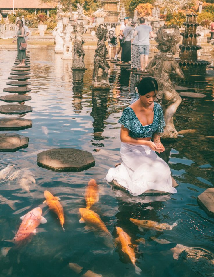 Witness crystal-clear waters plunge into a picturesque pool, creating a symphony of mist and rainbows. Let the rhythmic melody of the cascades soothe your senses, while the vibrant colors of the surrounding flora paint a vivid tapestry of nature's artistry. Next, see the Tirta Gangga Sacred Water Palace and its engraved stone lilypads that speckle the serene waters of this former royal residence. Admire how landscaped gardens, Hindu temples, and golden fish, koi, and carp add an ambient character to the place.
